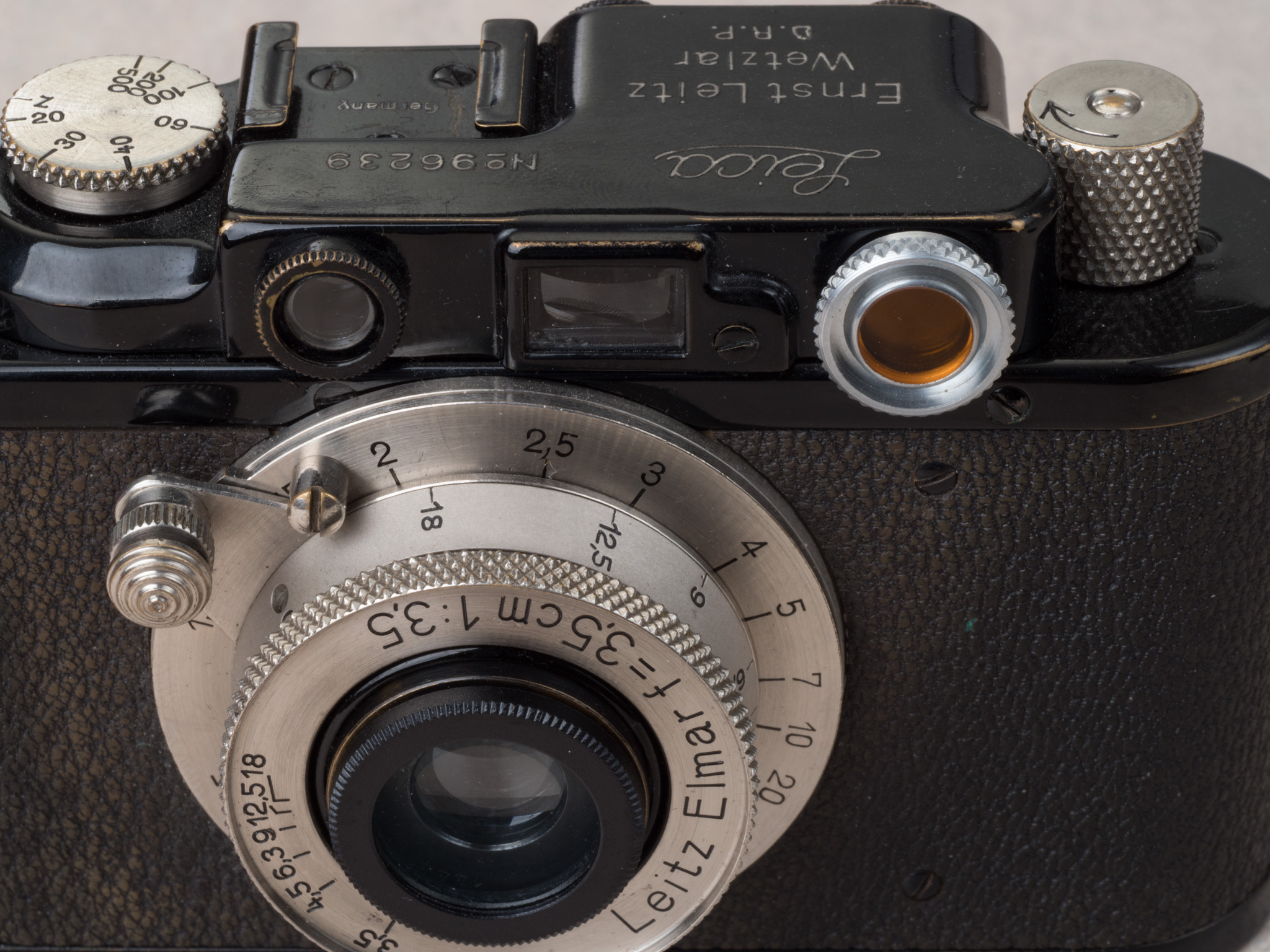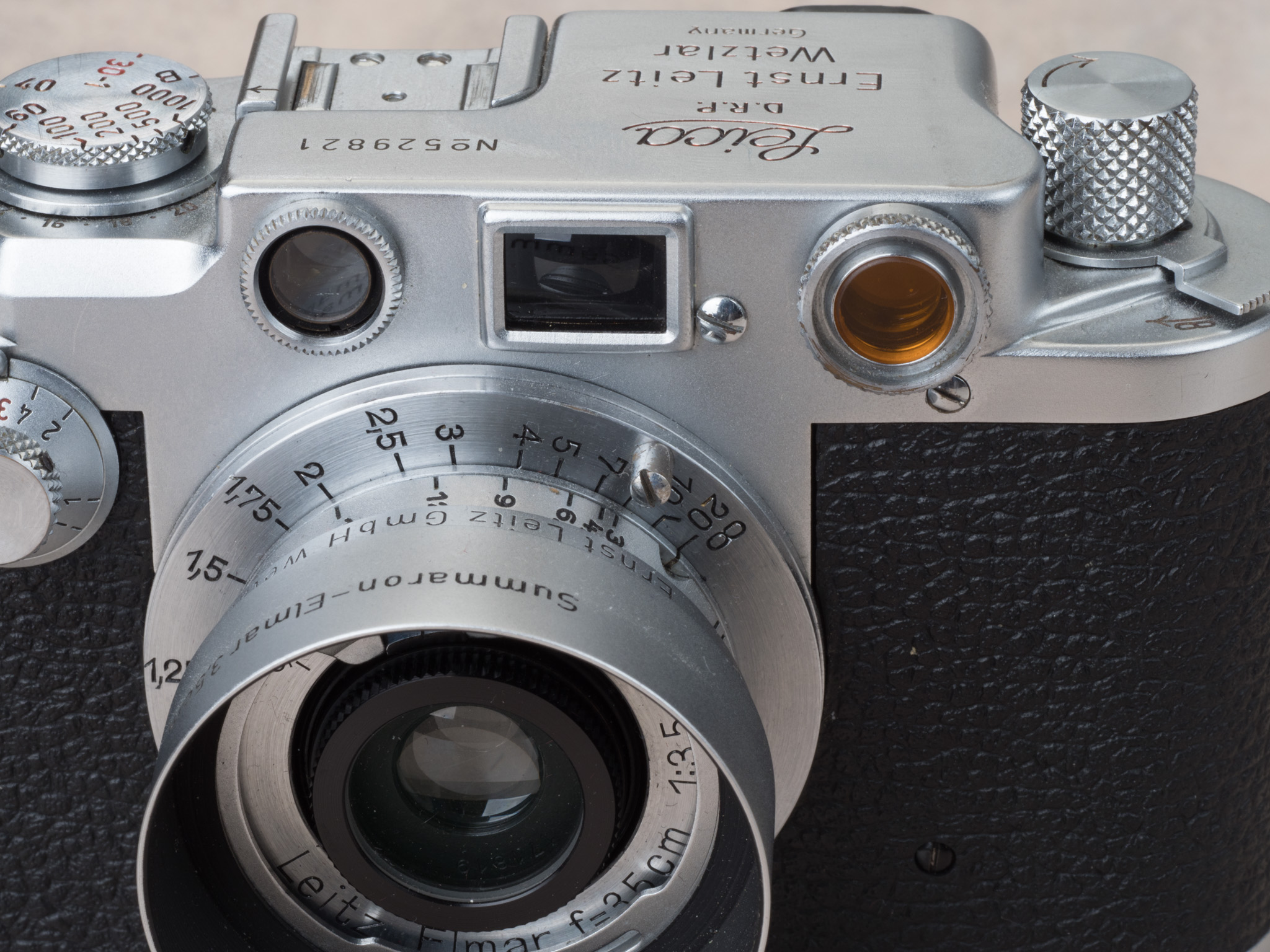 Leica II 초기형(1st batch)은 특이하게 자체적으로 Yellow contrast filter 가 내장되어 있다. 그래서 이중상이 더 잘 보인다.