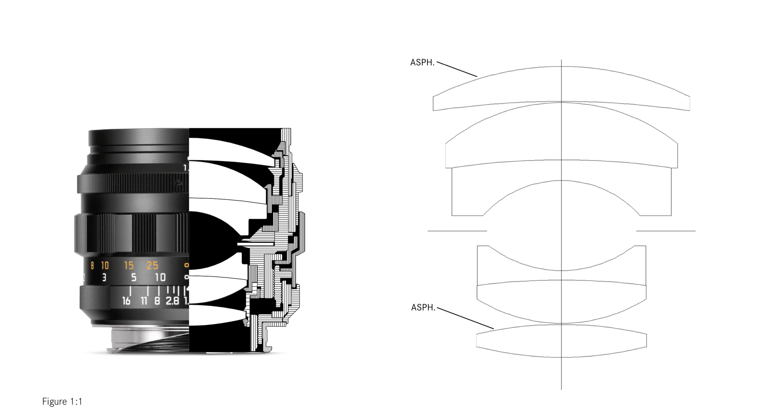 4군 6매의 구성이 빈티지와 동일하며, 비구면 2매(2면)를 포함하고 있다, 다만 당시의 유리알 재료, 가공방식이 다르기 때문에 광학식을 수정 보완한 재발행버젼이다. 언제나 그렇듯 동일한 재현은 불가능하다. 라이카가 라이카의 것을 다시 만들어 냄에도 불구하고 그렇다.