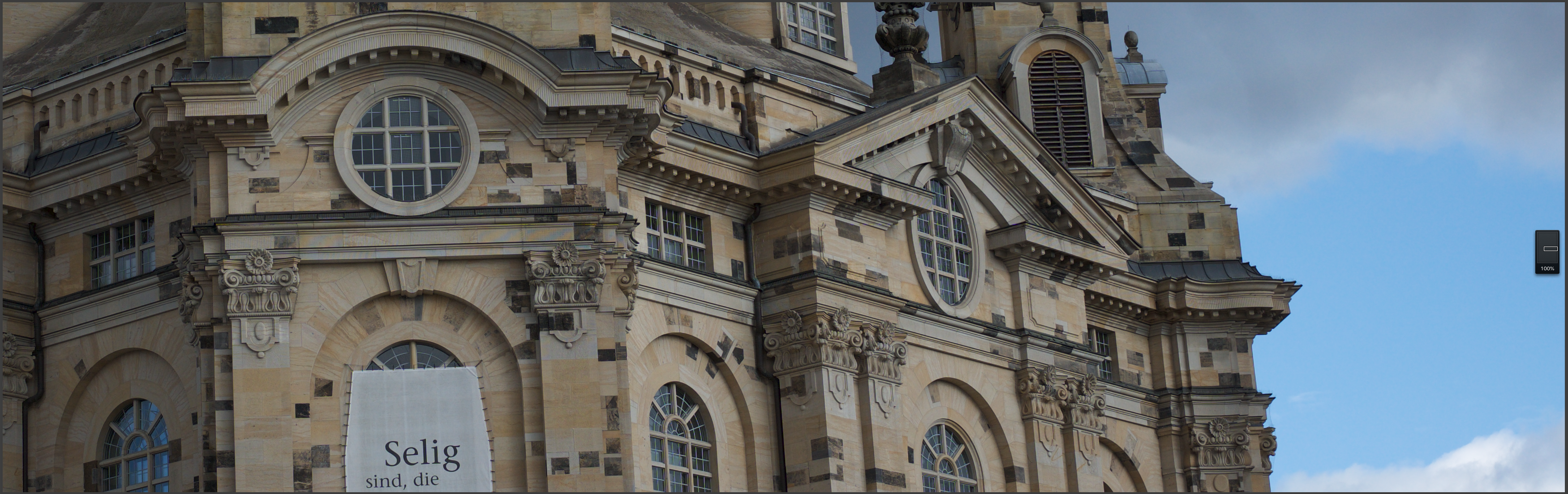 Look for the church clock, where you can easily tell the time even with a 100% crop, thanks to the extreme sharpness.